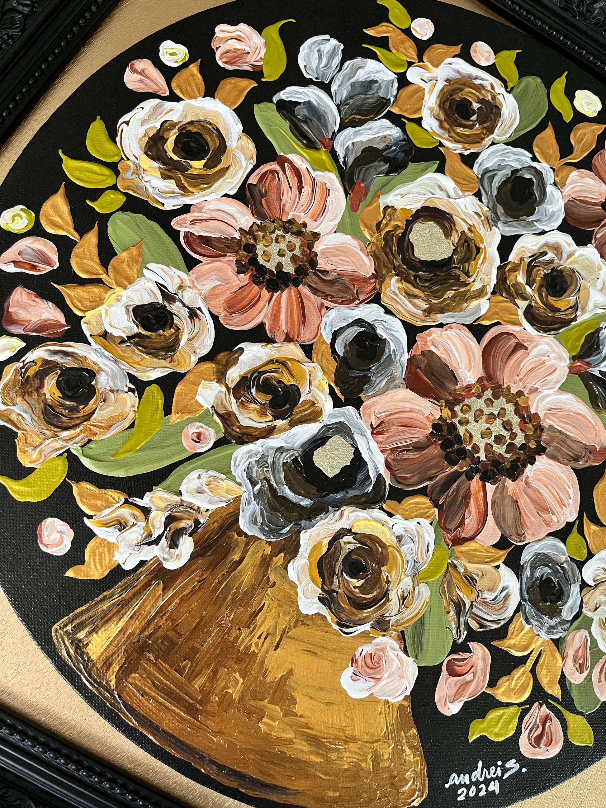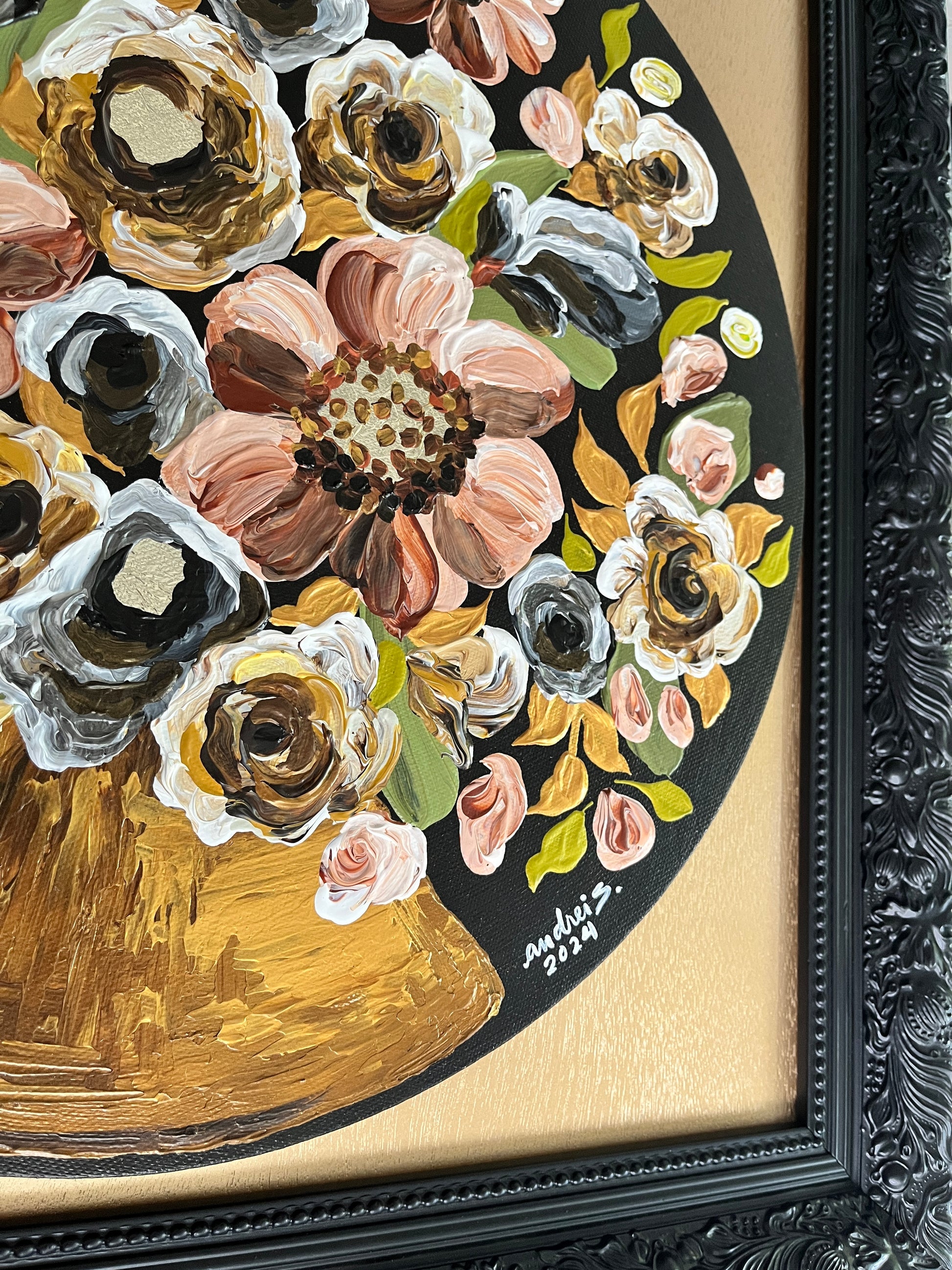 Mixed Media (Acrylics & Gold Leaf) Painting | 16" diameter round canvas | 22 x 22" with frame | 2024 |