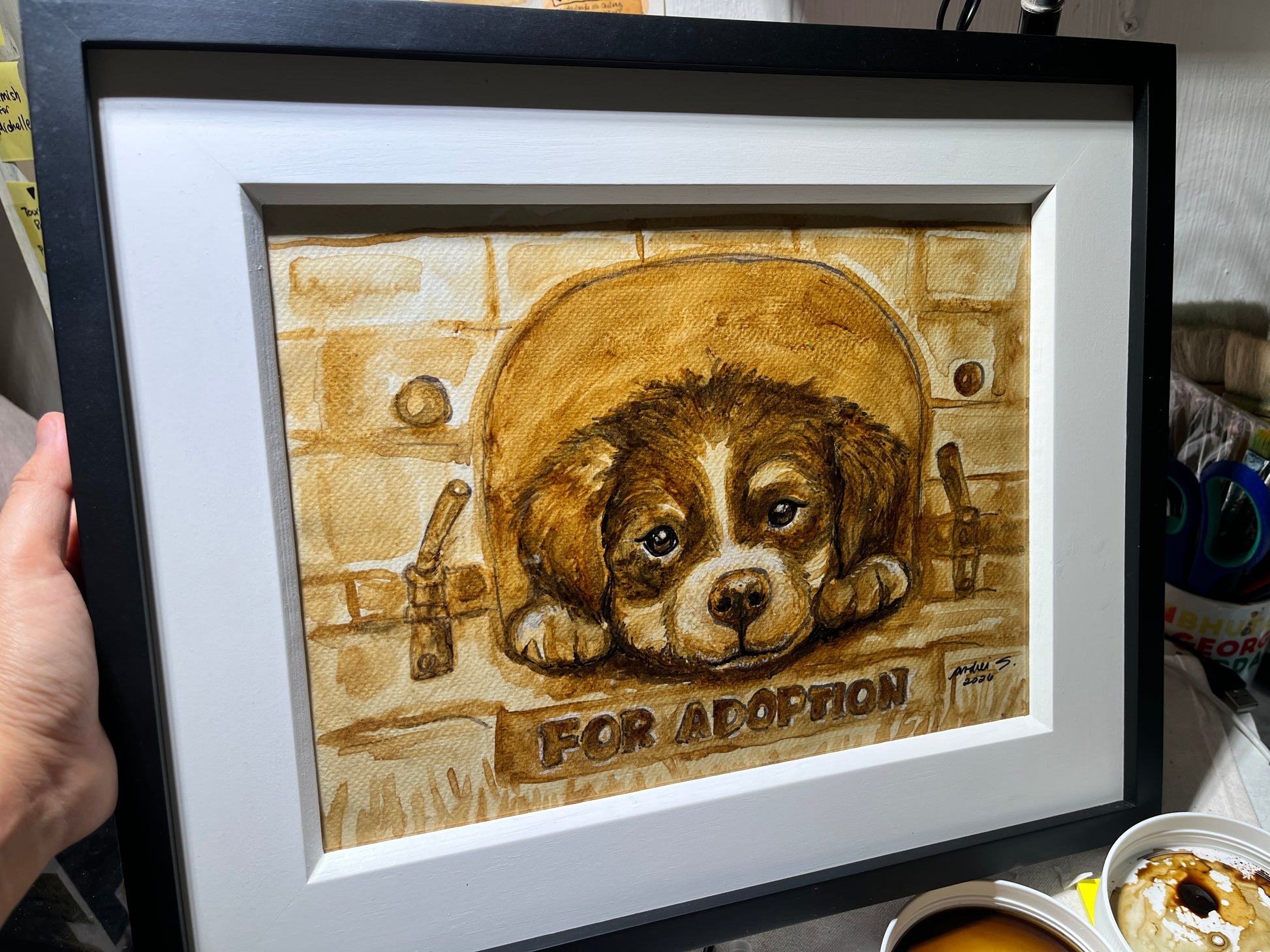 Mixed Media (coffee & markers) | 9 x 12" acid-free watercolor paper plus frame | 2026