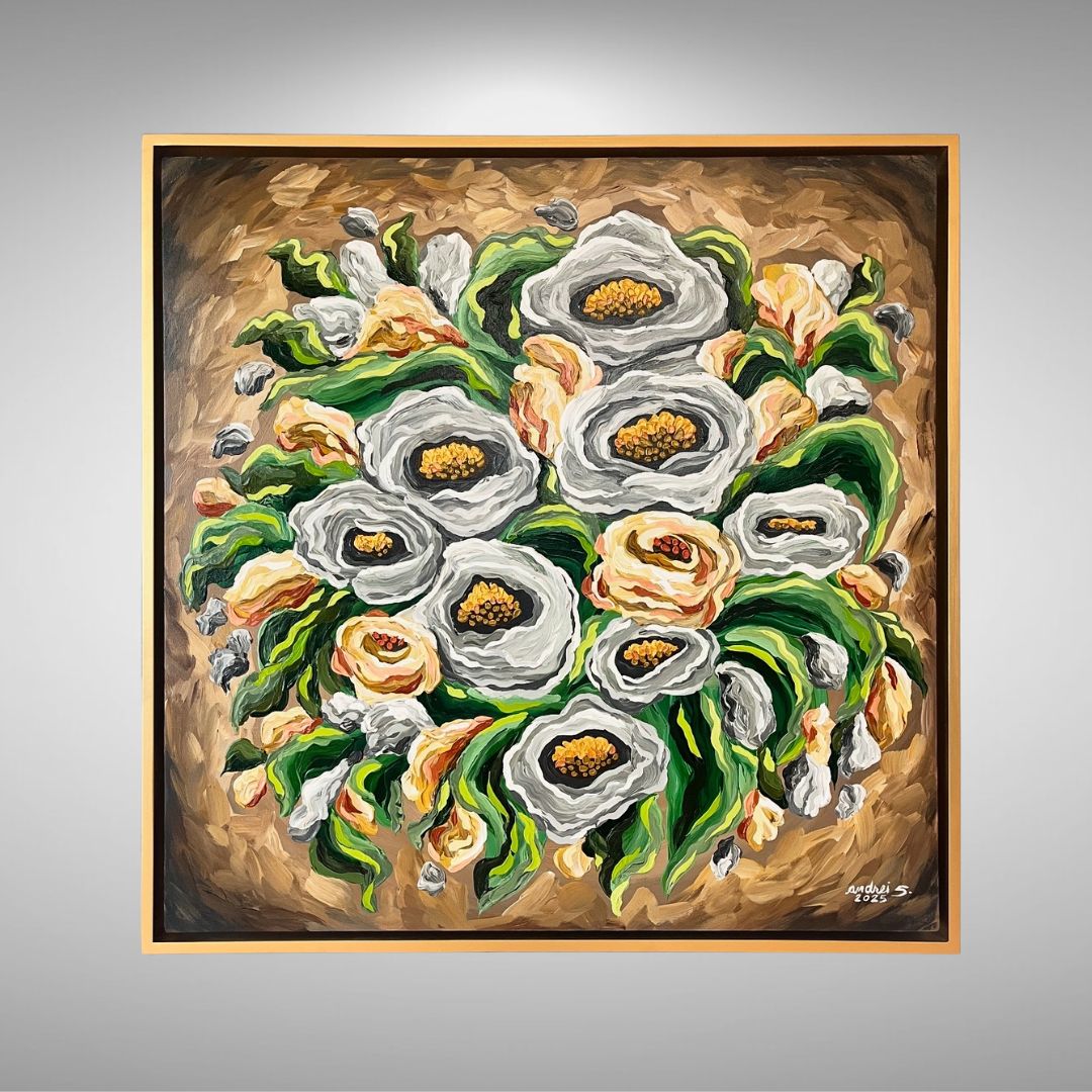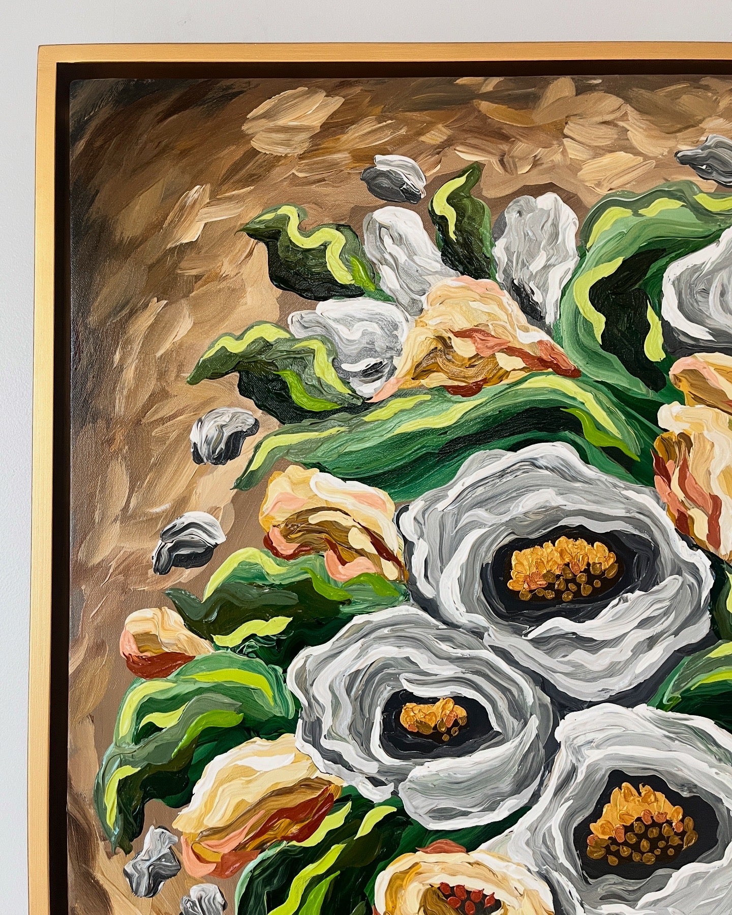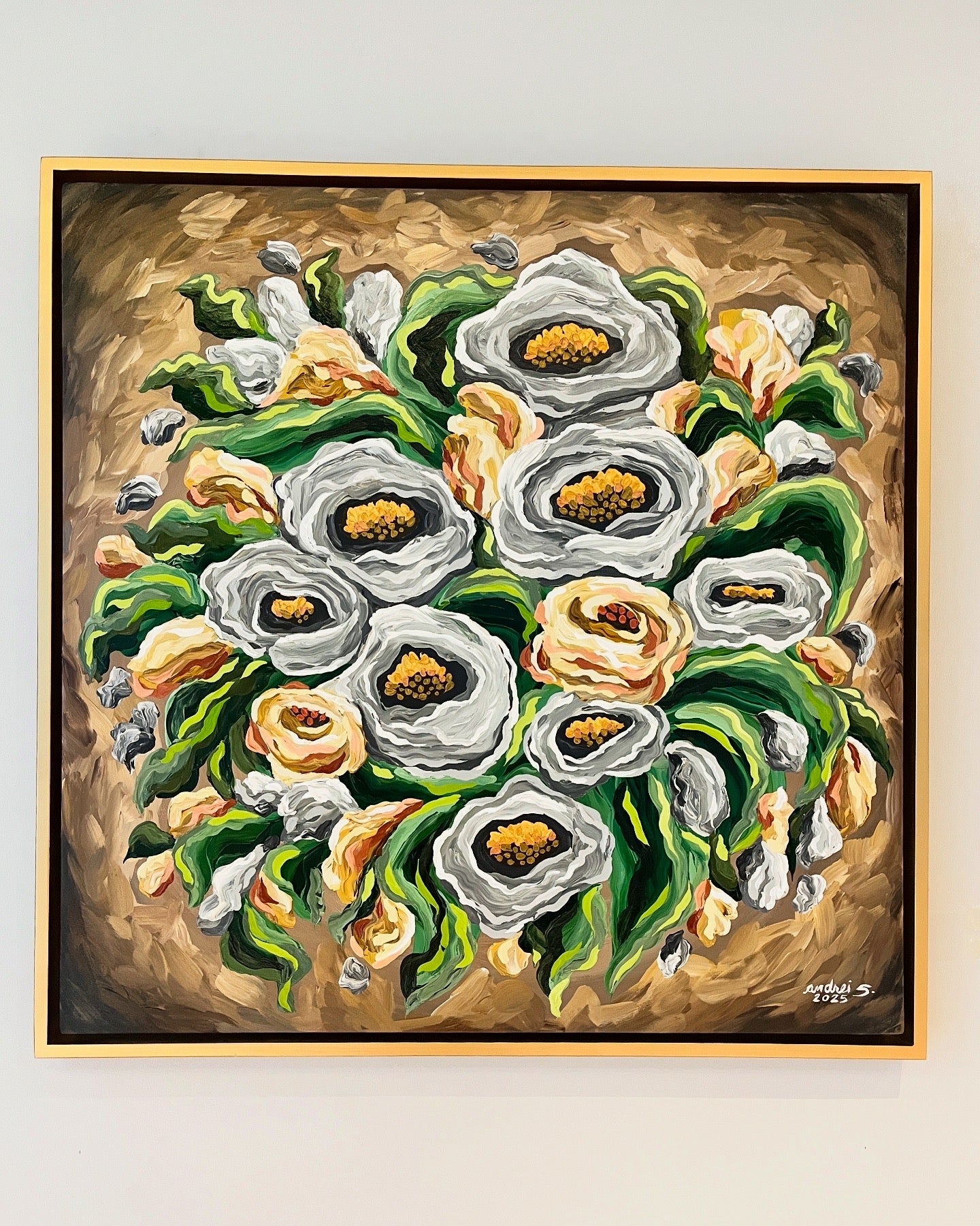 Mixed Media (Acrylics & Gold Leaf) Painting | 36 x 36" box-type canvas | approx. 39 x 39" total with frame | 2025 |