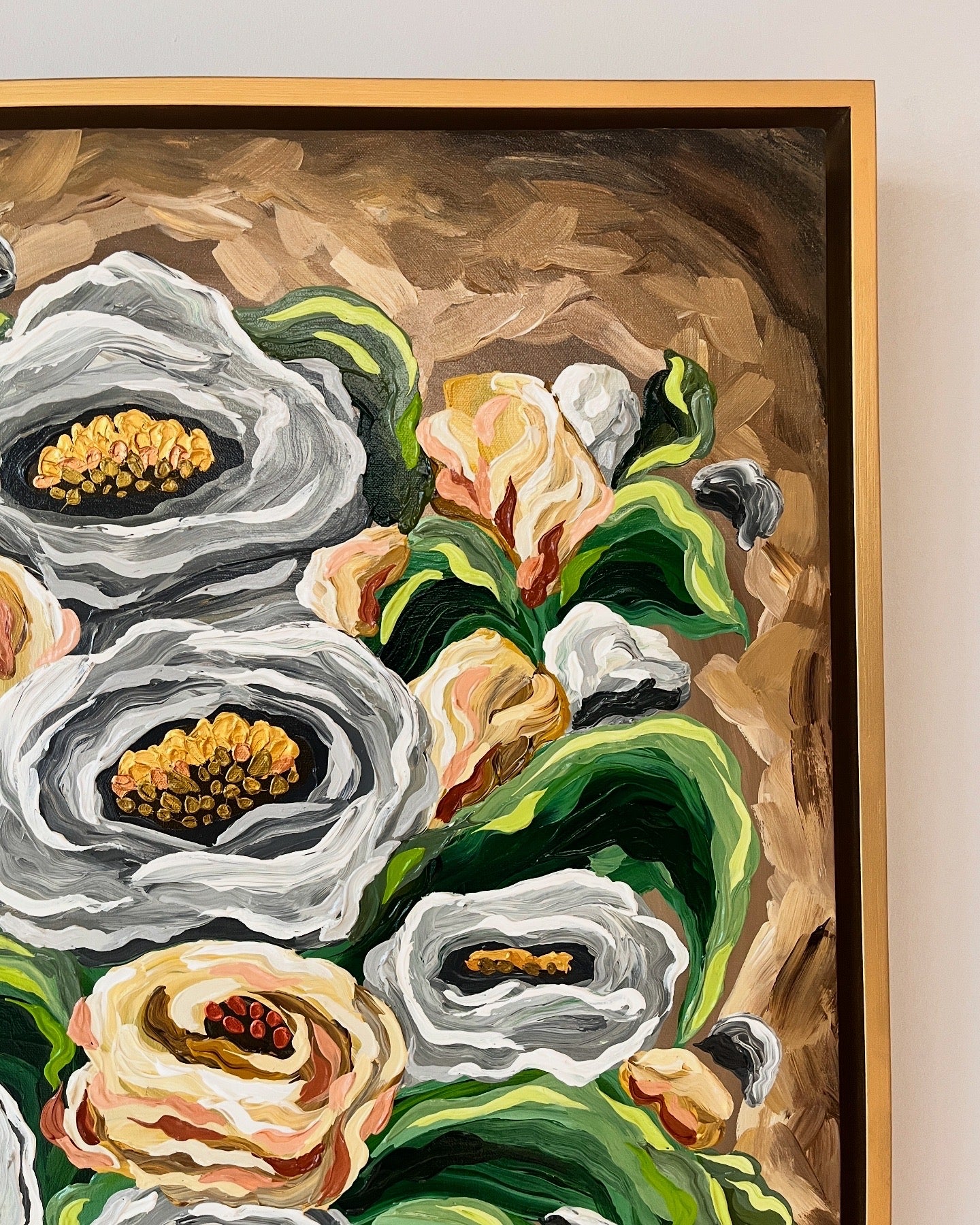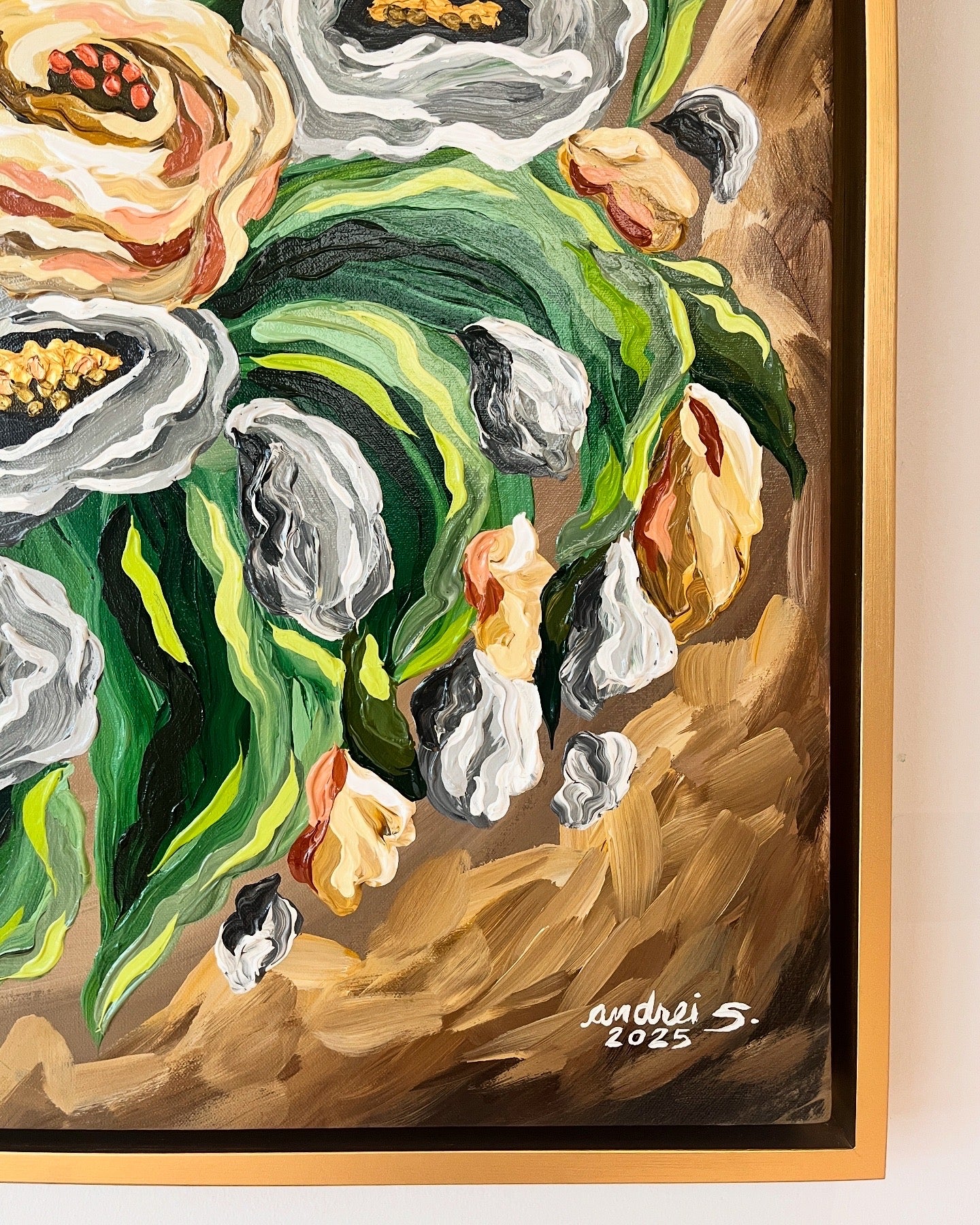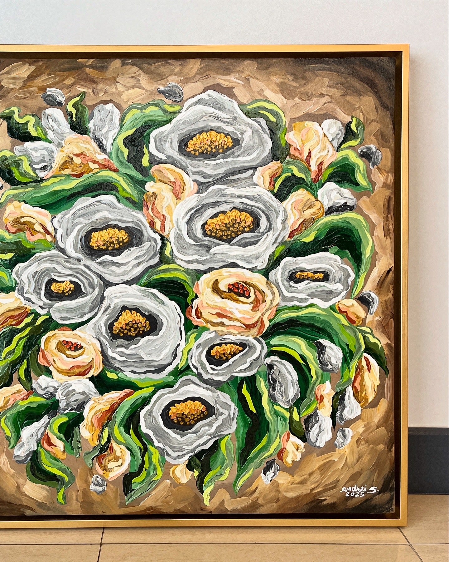 Mixed Media (Acrylics & Gold Leaf) Painting | 36 x 36" box-type canvas | approx. 39 x 39" total with frame | 2025 |