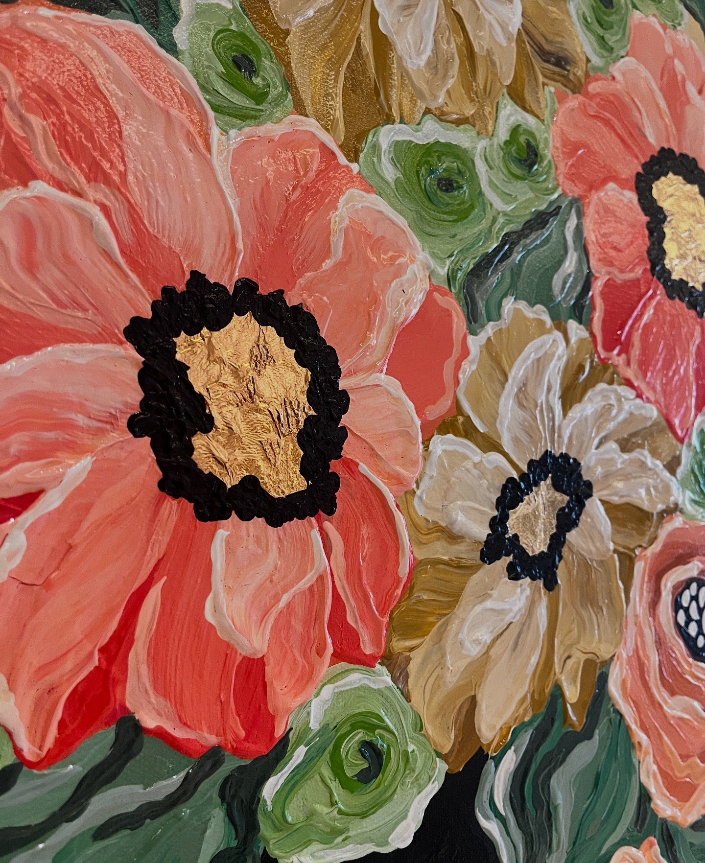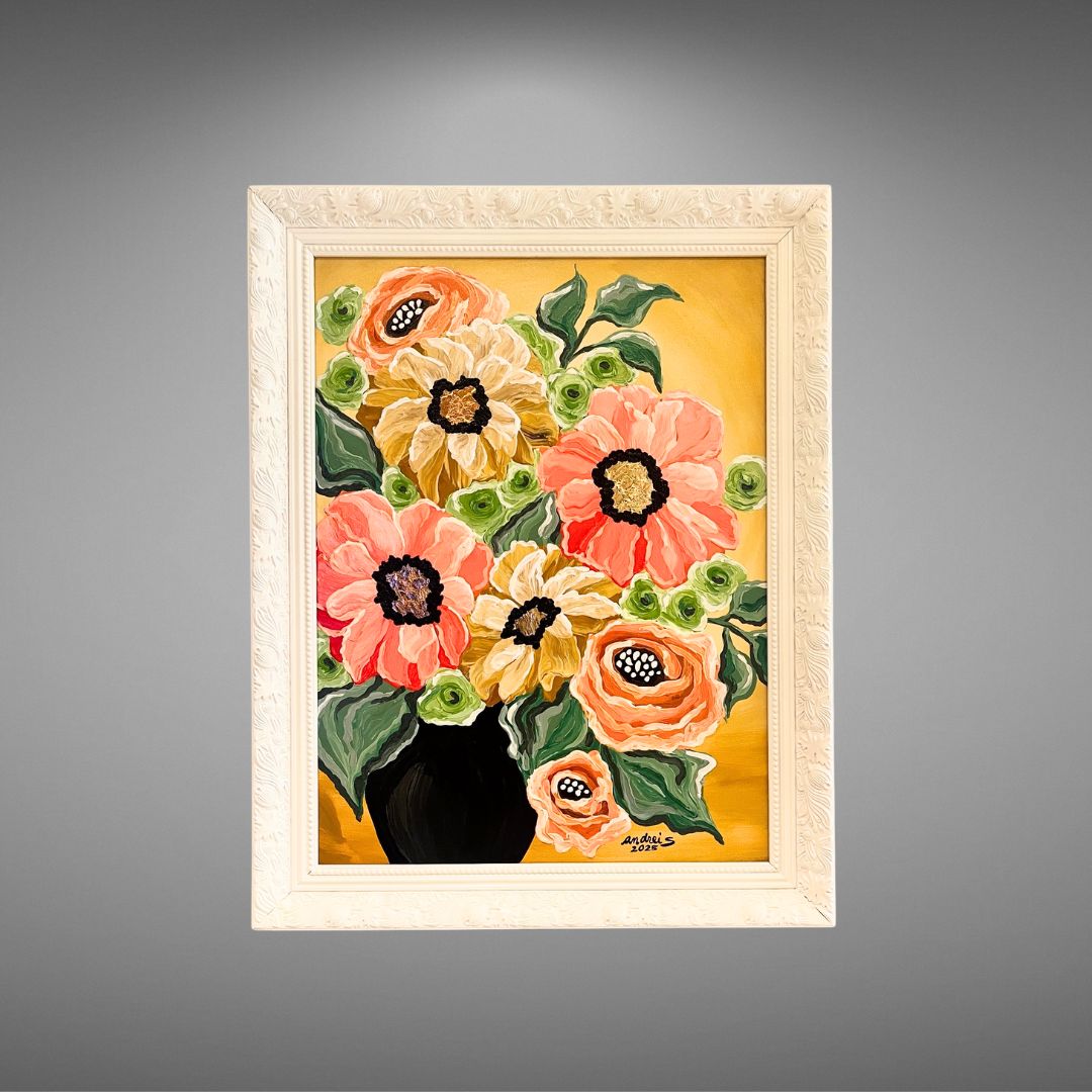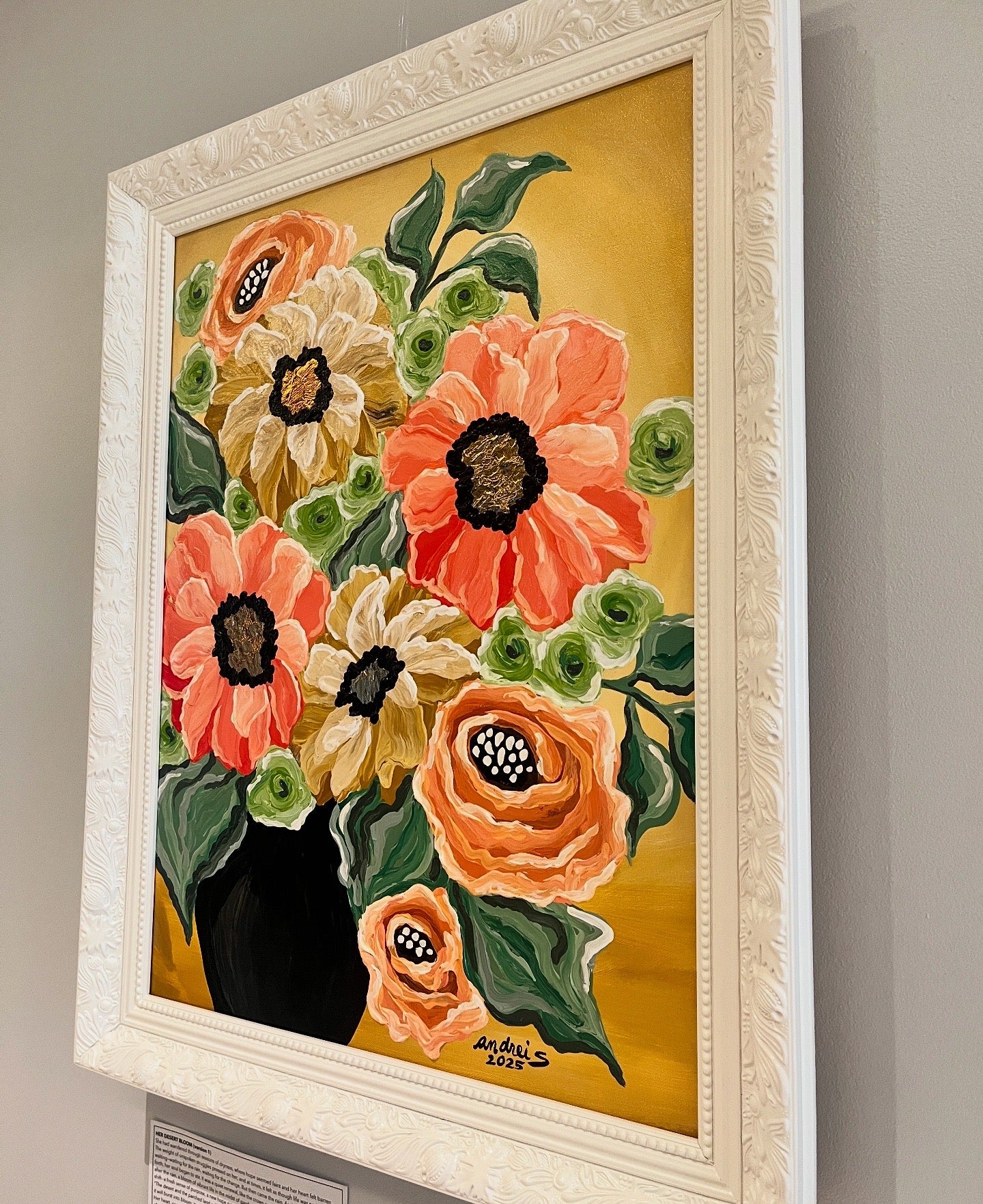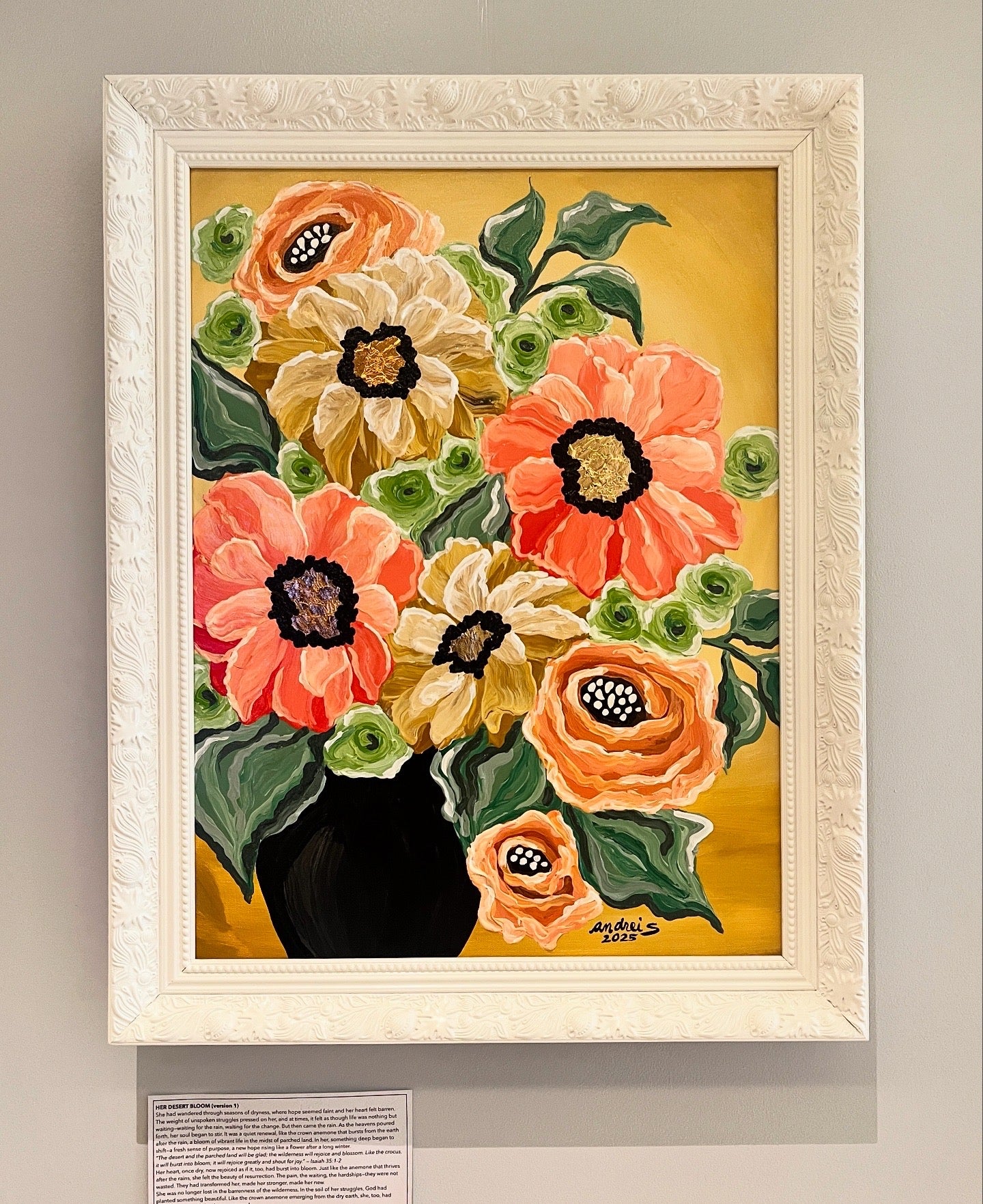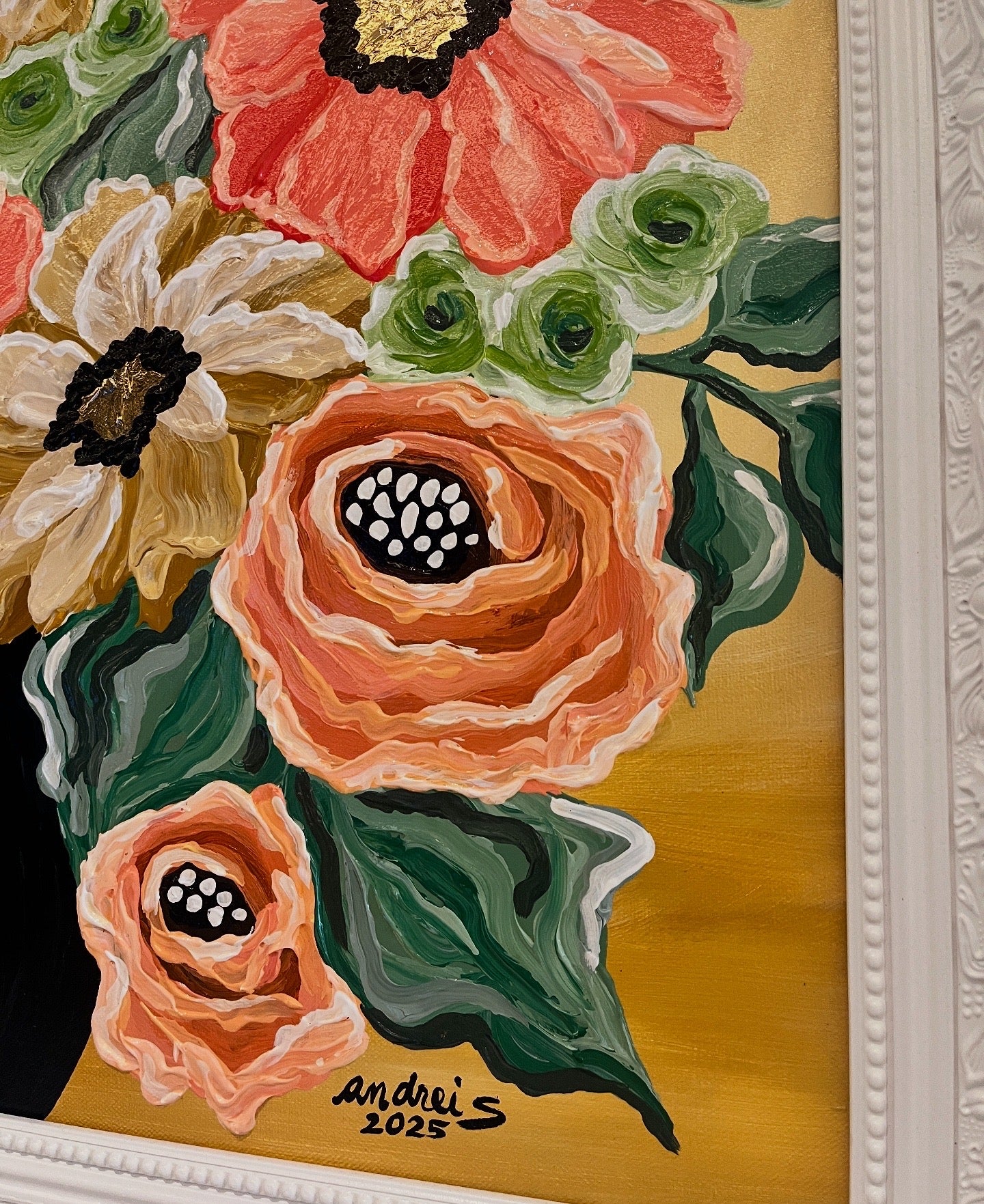 Mixed Media (acrylics & gold leaf) | 18 x 24 ” box-type canvas | Approx. 22 x 28 ” total with frame | 2025 |
