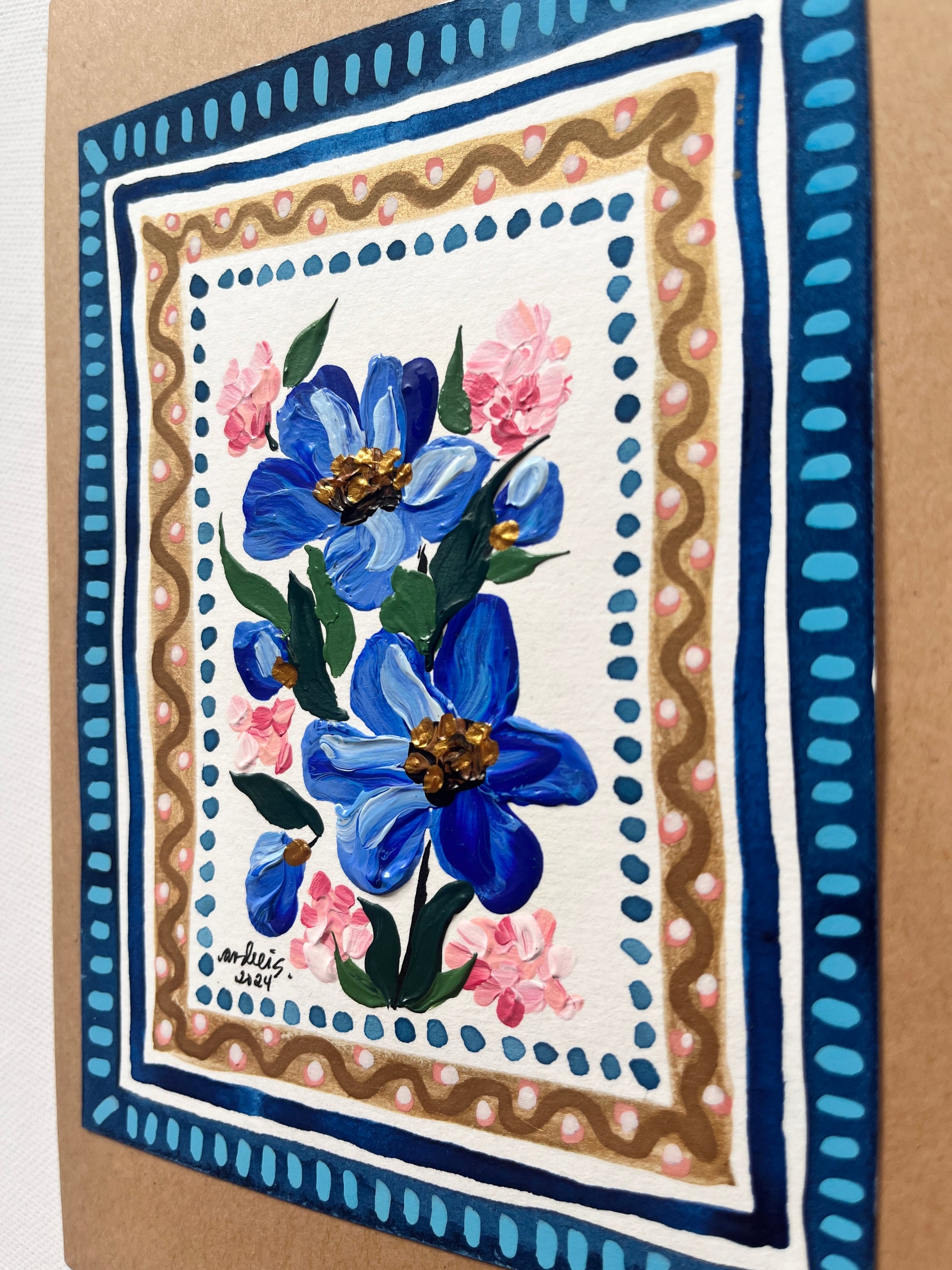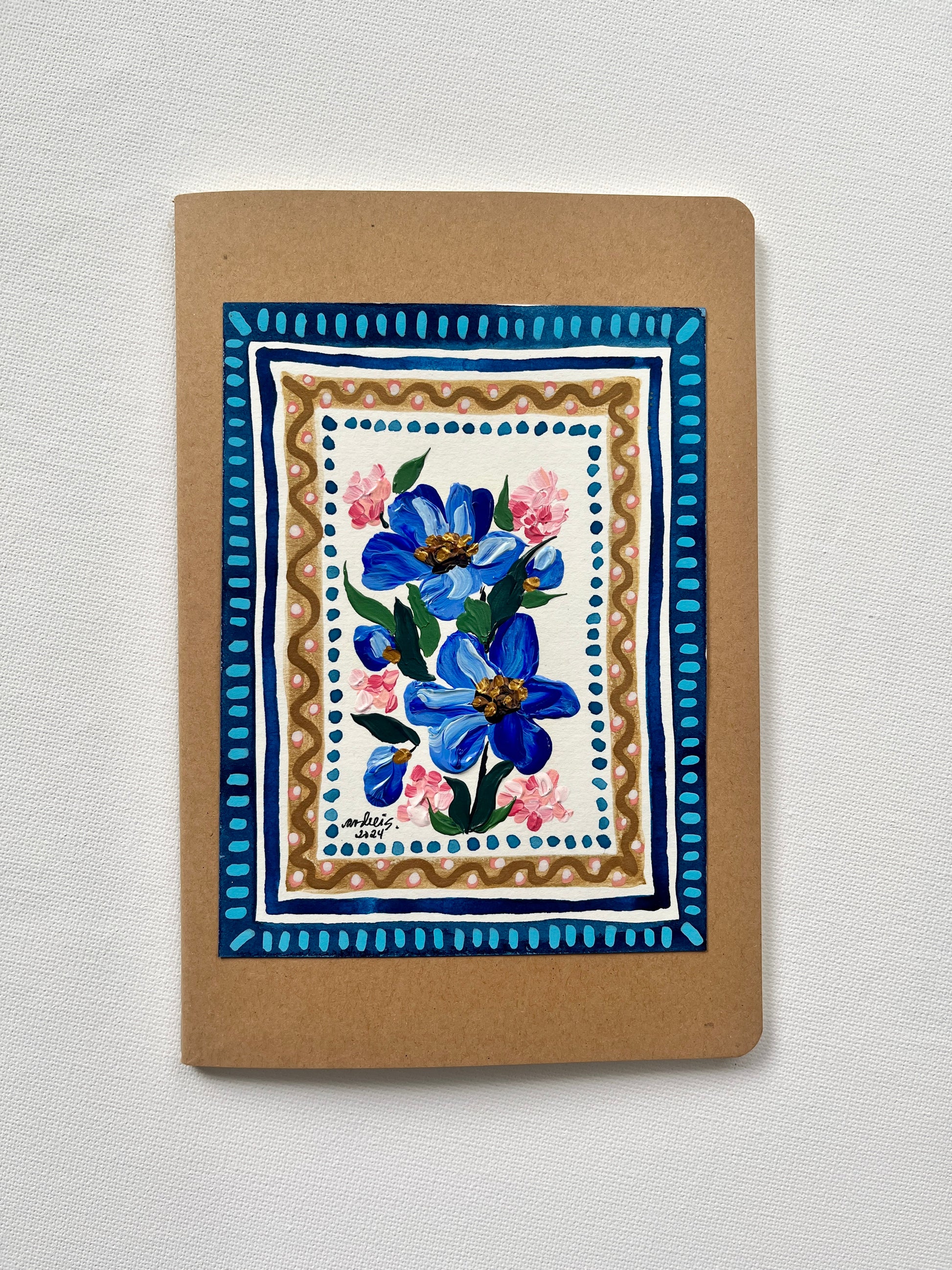NOTE: Mixed Media (watercolor & acrylics). Thin Journal (approx. 30 leaves); Blank pages (no lines nor dots); Postcard-size painting on a 5.5x8" journal.