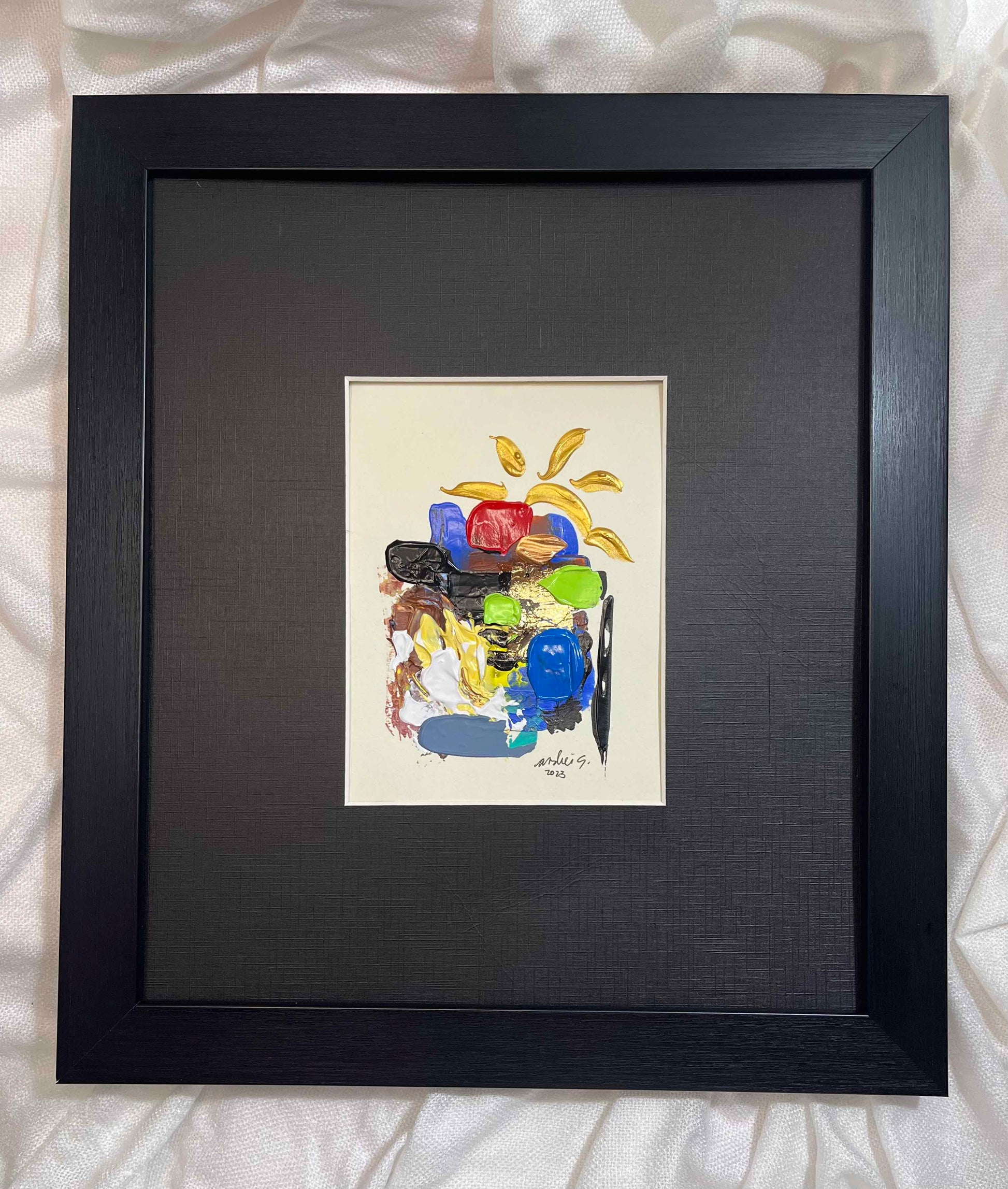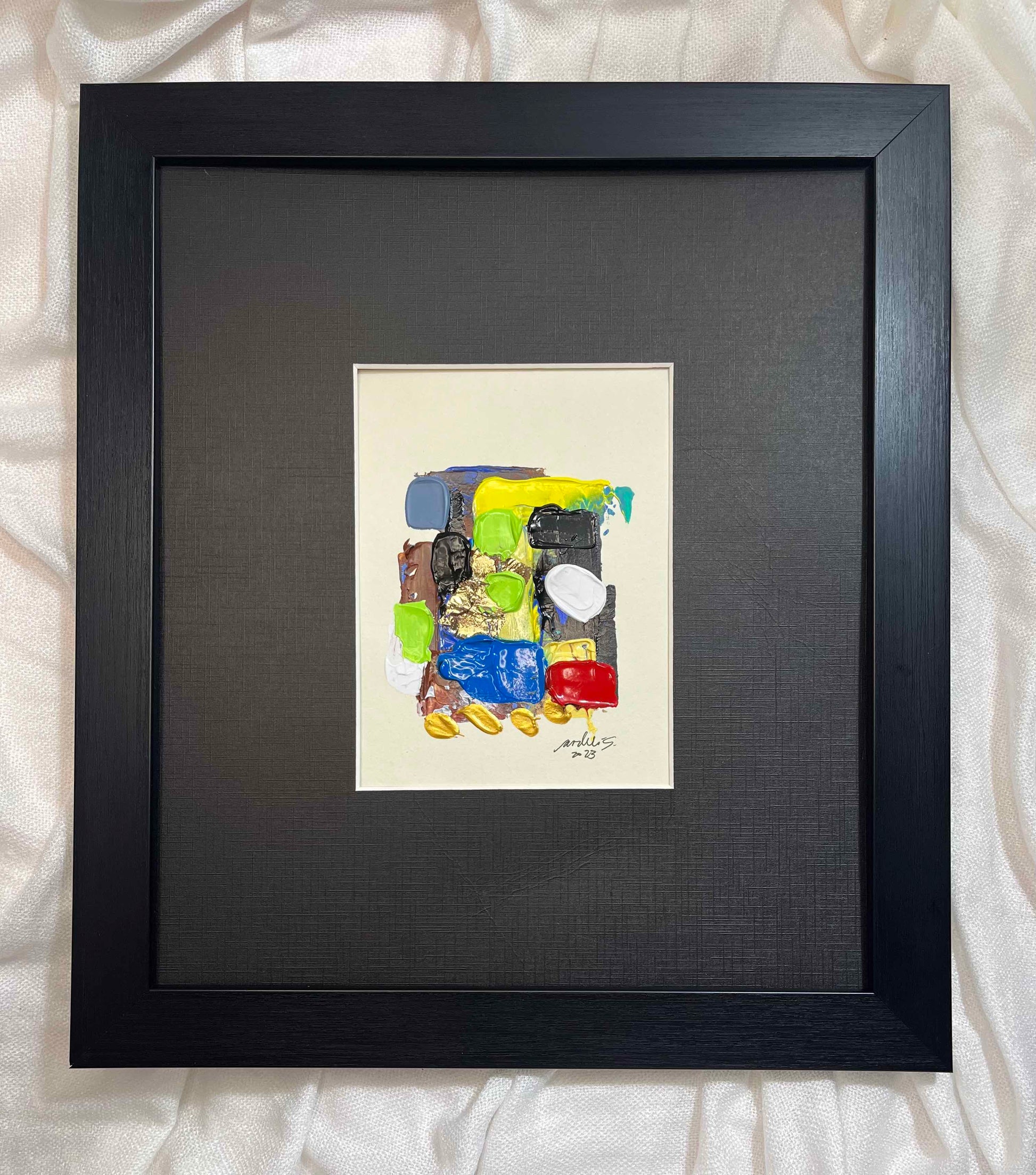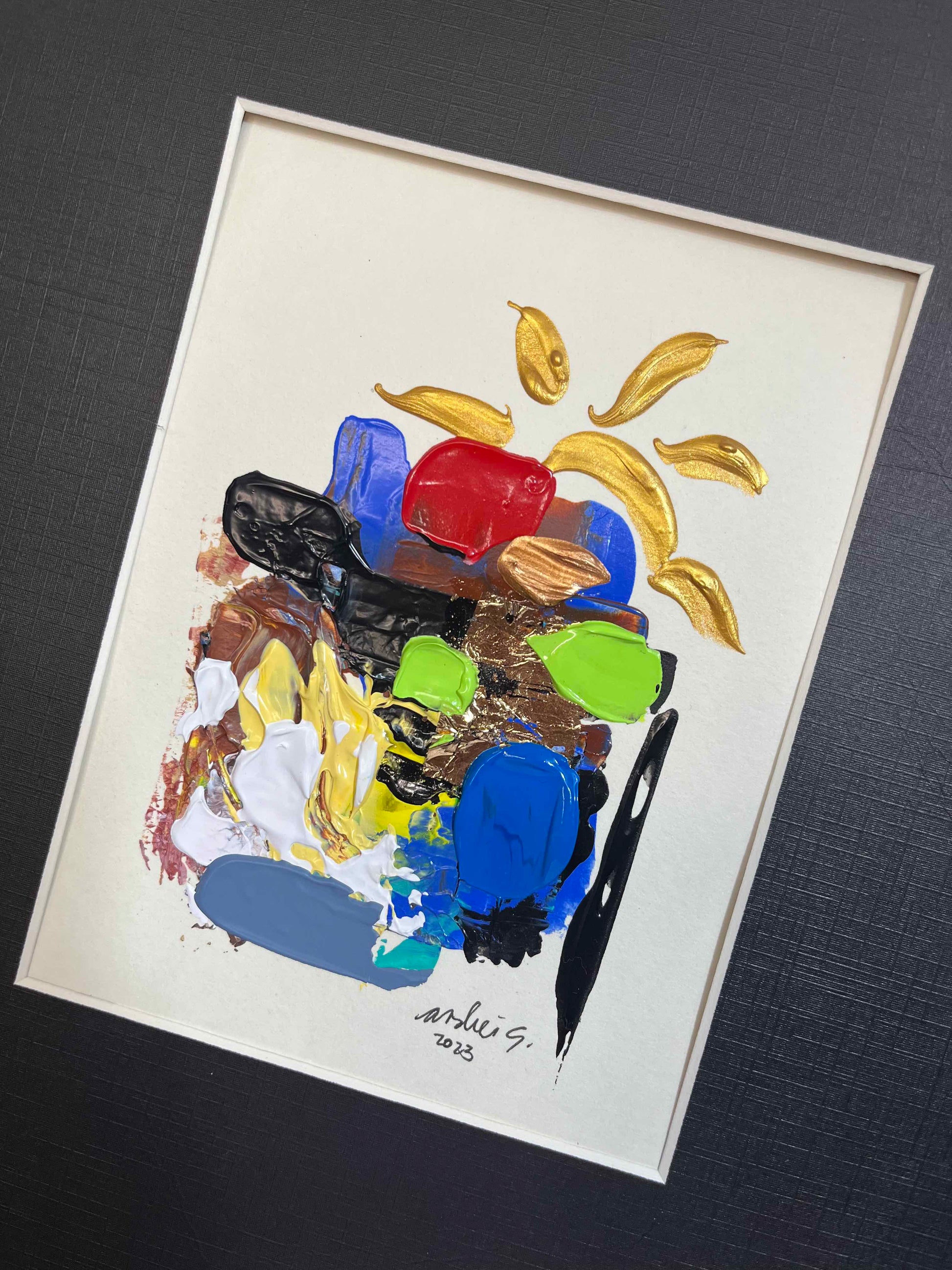 Gold Leaf & Acrylic Painting | With glass, matting & frame | 4 x 5.5” acid-free paper | Approx. 12 x 13.5” approx. total with frame | 2023