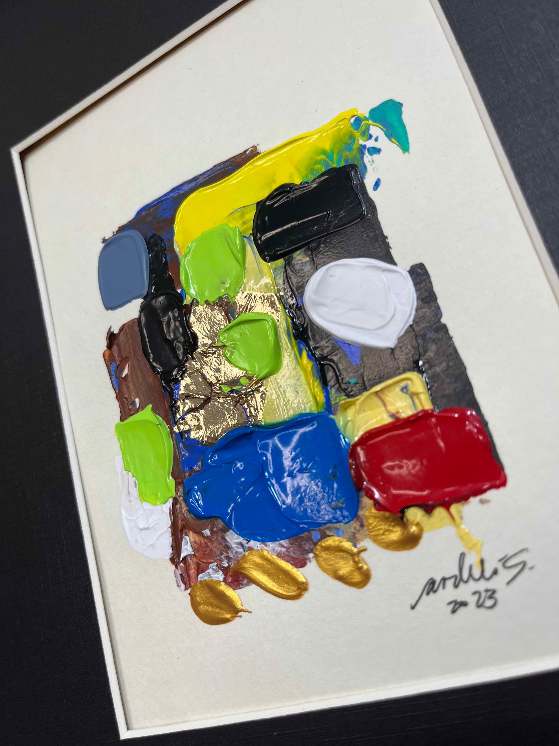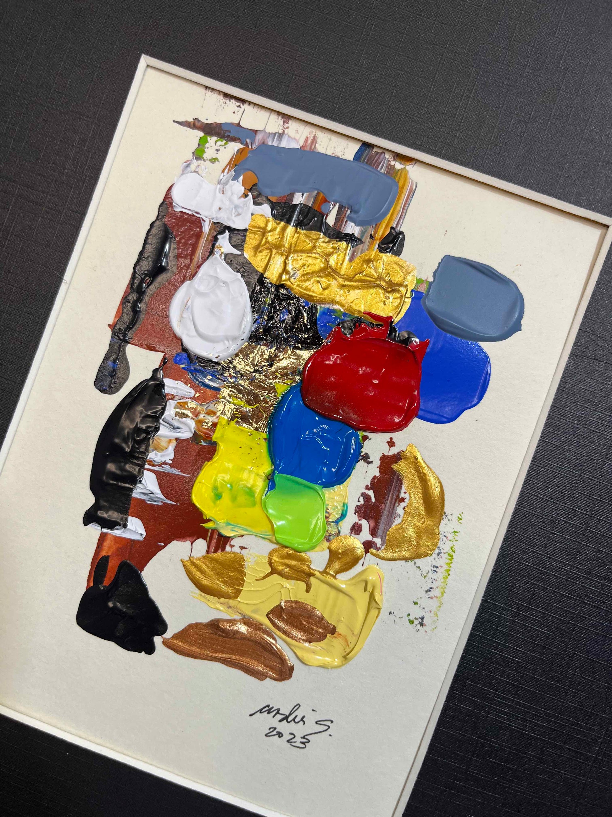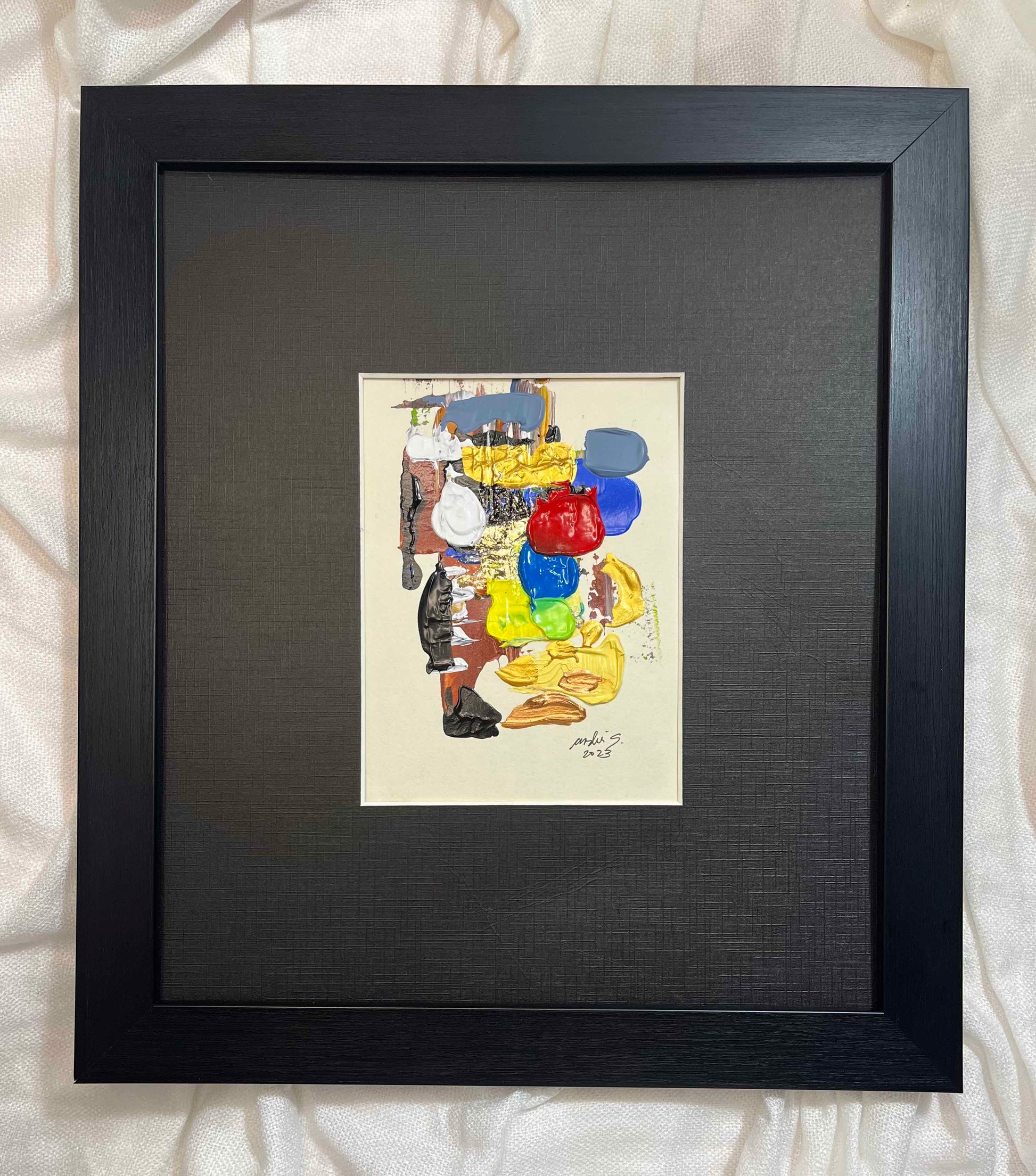 Gold Leaf & Acrylic Painting | With glass, matting & frame | 4 x 5.5” acid-free paper | Approx. 12 x 13.5” approx. total with frame | 2023