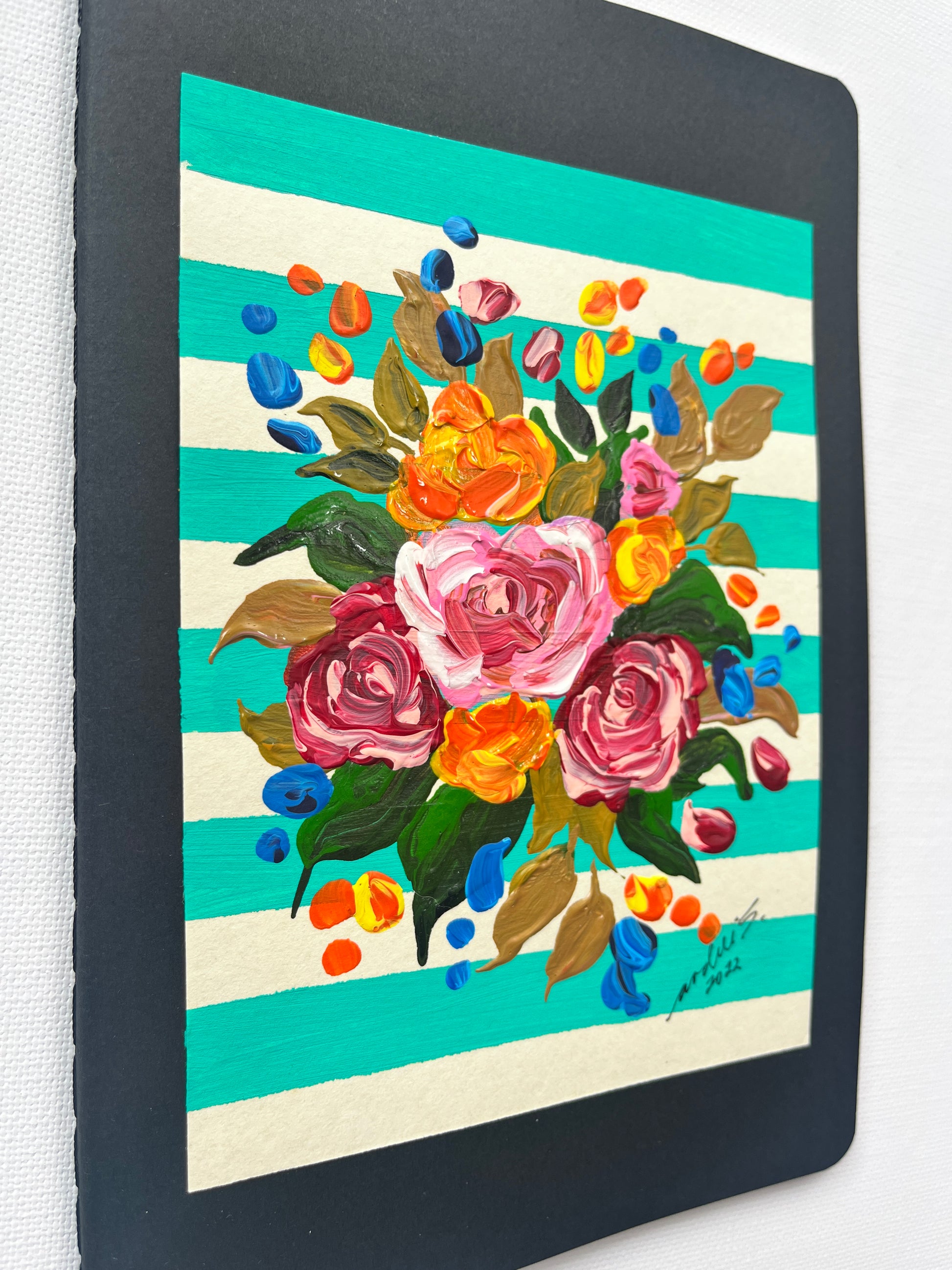 NOTE: Mixed Media (watercolor & acrylics). Thin Journal (approx. 30 leaves); Blank pages (no lines nor dots); Postcard-size painting on a 5.5x8" journal.