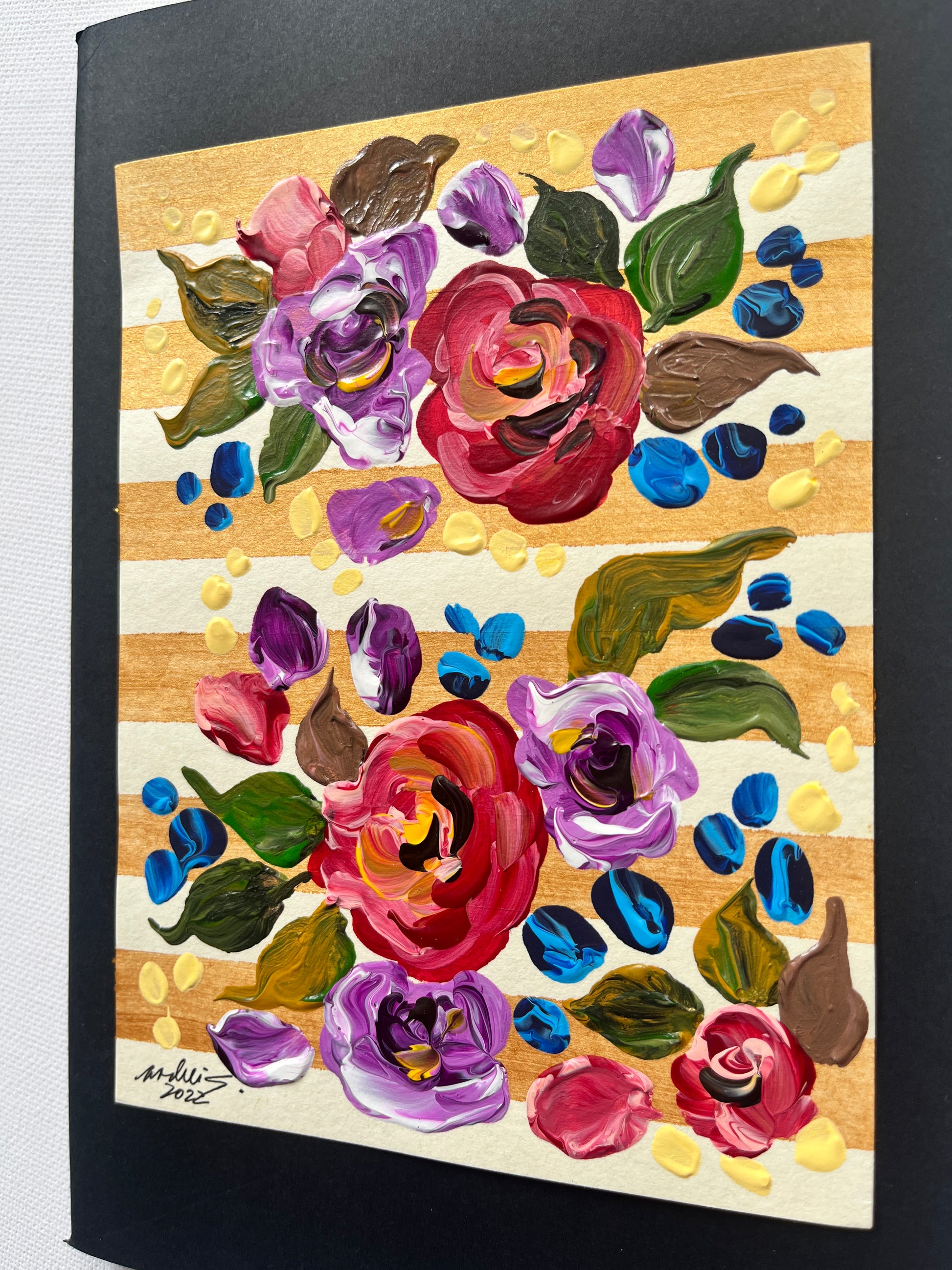 NOTE: Mixed Media (watercolor & acrylics). Thin Journal (approx. 30 leaves); Blank pages (no lines nor dots); Postcard-size painting on a 5.5x8" journal.