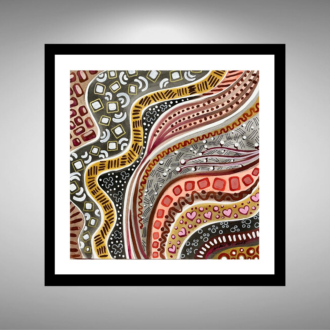 Mixed Media (watercolor, acrylics & markers) | 12 x 12" acid-free paper | 15 x 15" total with matting & frame (with glass) | 2025