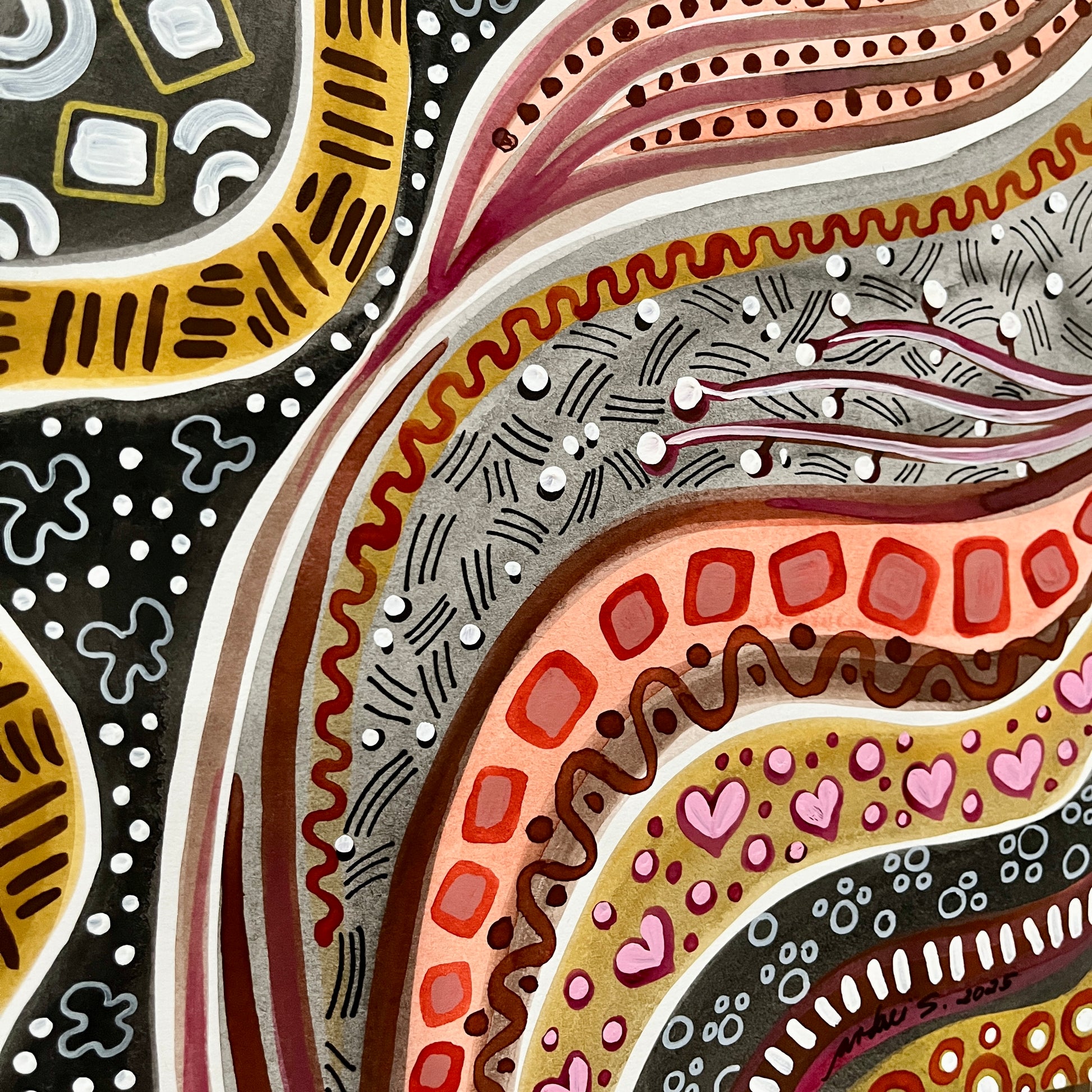 These pieces came from a season of slowing down—no pressure, no plans. Just me doodling for fun, like when I was a child. I set aside grandeur and big ideas and let the lines, dots, and even the splatters and pours of paint lead my hand. In that pause, I was reminded: God doesn’t always show us the full picture right away. Sometimes, the most sacred thing is just showing up. Even the smallest marks—or the unexpected splashes—matter. He’s weaving them together, and one day, we’ll see the beauty He always had in mind.