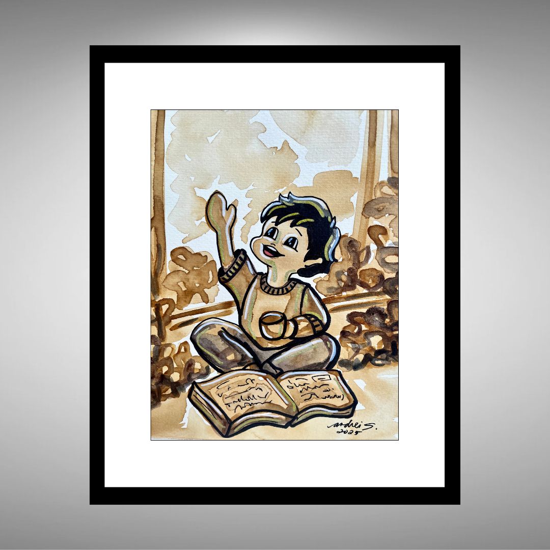 Mixed Media (coffee, acrylics & markers) | 8 x 10" acid-free paper plus frame | 13 x 15" total with matting & frame (with glass) | 2025